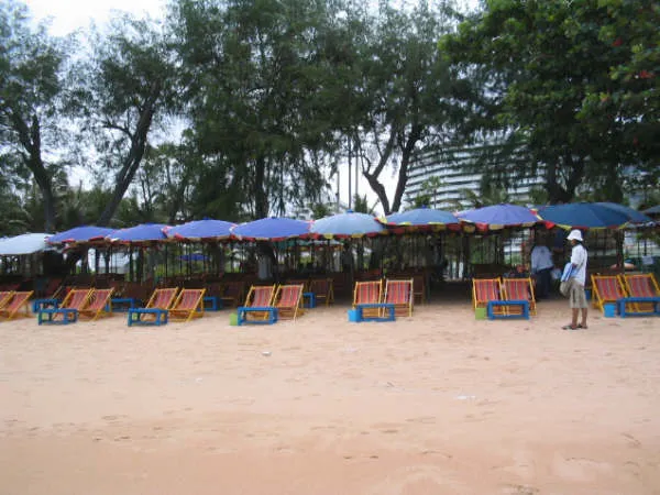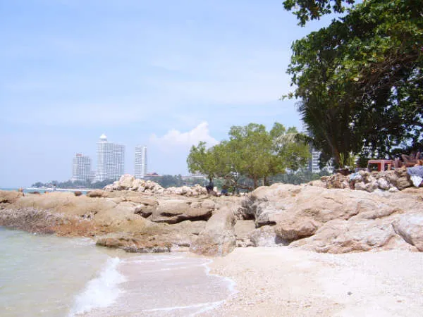 an der Beach Road Dieser Strand ungefähr 4 km lang, ist der zentrale Strand von Pattaya und Umbgebung. Allerdings ist er zum Baden nicht der empfehlenswerteste, denn dort legen zahlreiche Boote an und das Wasser ist dort auch nicht gerade das sauberste.